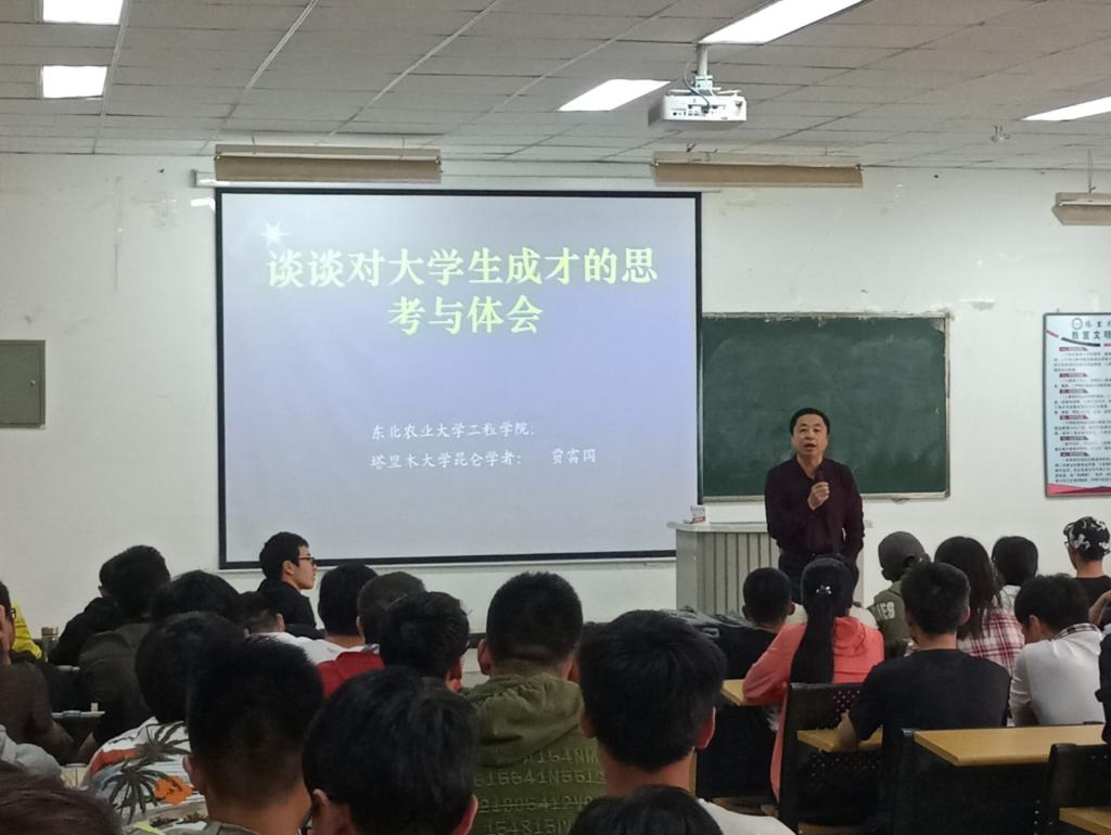 贾富国教授为学生做了关于《谈谈对大学生成才的思考与体会》的报告,通过自己如何将研究生曾勇(做爱电影