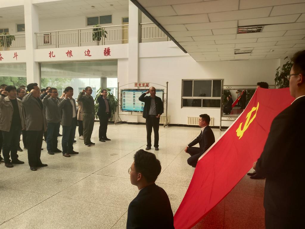 党委副书记、院长弋晓康的带领下面对党旗,举起右拳,一起重温入党誓词,坚定有力的宣誓声,表达了党员“不忘初心、牢记使命”的信念及决心。