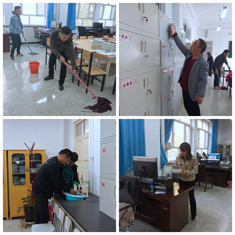 教工党员们积极发扬奉献精神,将自己所在系、中心办公室的卫生进行打扫,大家分工合作,各负其责,有的拿起笤帚,有的拿起抹布,有的拿起拖把,认真对办公室的卫生死角进行全面清扫,对办公桌椅以及书刊资料等办公物品进行归类整理。经过彻底的打扫之后,各系、中心办公室窗明几净,焕然一新。
