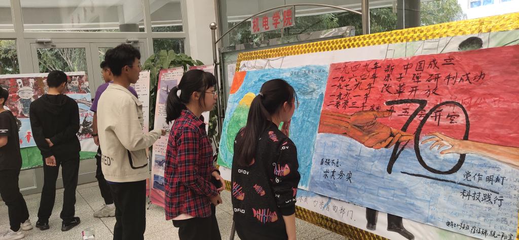 本次活动收到各班级参赛作品共计30件,经评比,筛选出10张主题鲜明、内容丰满的作品于10月1日至14日在工科楼大厅展出。广大师生通过海报重温了祖国七十周年来的巨大变化,感受到了祖国的强大和繁荣,激发了本院师生的爱国主义情怀和自豪之感。