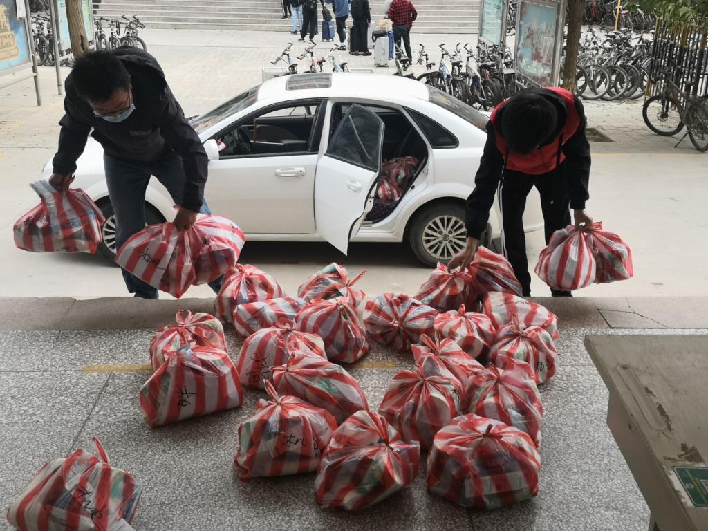 为了方便返校复学同学的学习生活,学校为每一名回“家”的学子都准备了爱心大礼包。一趟、二趟、三趟……,测量体温、做好标签、清点数据,罗老师每天开着车,将爱心大礼包从宿舍楼送到各个宾馆,经常忙到凌晨两三点才能回到家。