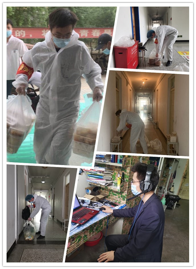 每次送饭的时候,他都会问一句:“能吃饱吗?”。简单的一句话透露着无限的关心。饭后收垃圾,测体温,取快递、心理疏导等一样也不少。