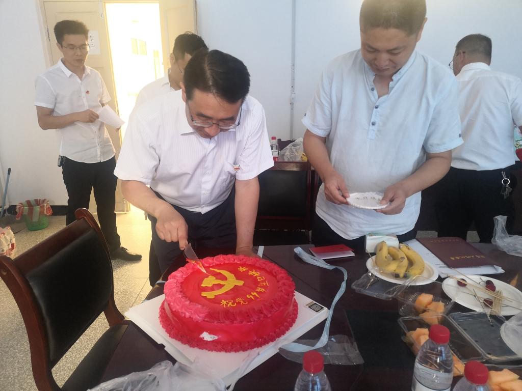宣誓结束后,王旭峰和全体党员一起分享蛋糕,共同庆祝党的生日。
