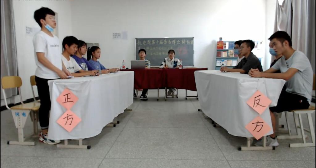 学习部和院辩论队联合举办了第十届唇舌烽火辩论赛表演赛。院辩论队成员分别作为正反两方,就“机电院,女生更难还是男生更难”这一辩题展开了激烈的角逐。针尖对麦芒,双方各展其长,为线上钉钉上的同学们带来了精彩纷呈的视听盛宴。