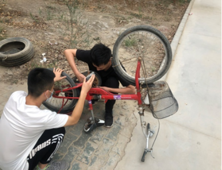 活动前期,学生党支部对各个学生公寓楼废旧自行车进行回收,统一集中至工科楼后院并对自行车进行修理。并将修理好的20余辆自行车赠送给十一团一连访汇聚工作队。