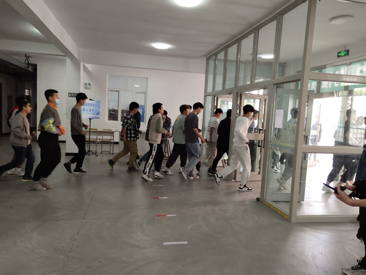 17日上午12时,随着消防警笛声的响起,在辅导员和志愿者的引导下,同学们快速、有序疏散,沿着最近的安全疏散路线迅速撤离至空旷地带。