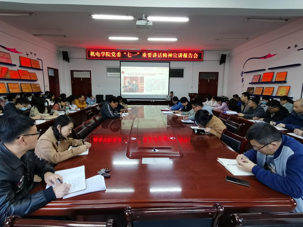 党委书记王红飙在工科楼229会议室宣讲“总书记‘七一’重要讲话精神”,全体教工听取宣讲。