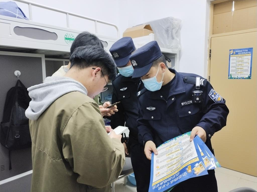 活动开始,党支部负责人对参与活动的志愿者进行了签到和任务的分配工作,为活动的开展做好了精细的分工。活动中,志愿者们在宿舍门内张贴防诈宣传海报,让大家学习防诈小知识,提高自己的防范意识。另外,公安民警在宿舍内面对面向群众宣传防范电信诈骗知识,揭露犯罪分子的作案手段,提醒大家一定要知道正确的防范方法,端正心态,不能存在侥幸心理而“贪小便宜吃大亏”,遇到可疑情况时,及时与亲属、朋友等沟通商议或拨打报警电话,谨防上当受骗。