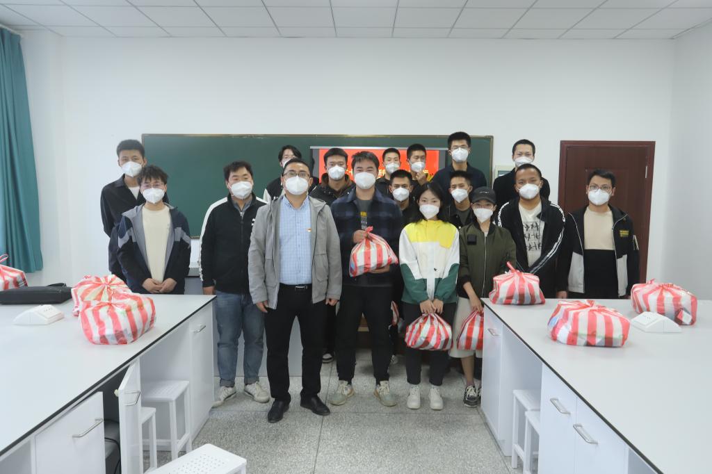 领导及全体辅导员分三组进行慰问,与留校同学们进行亲切座谈,并向大家发放慰问品,活动结束后与大家进行合影留念。