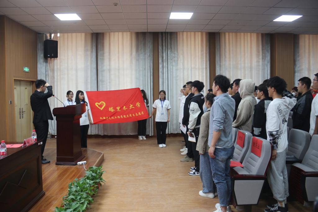 仪式中,参会人员集体观看2022年暑期“三下乡”风采视频并进行宣誓仪式,薛旭炜同学带领全体参会人员领誓。