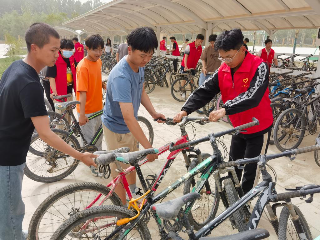 农业工程系学生党支部在2号宿舍楼楼下开展“自行车整理,党员我先行”主题活动。