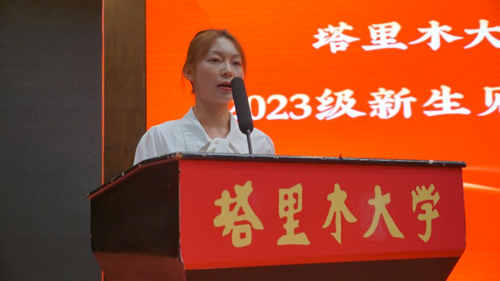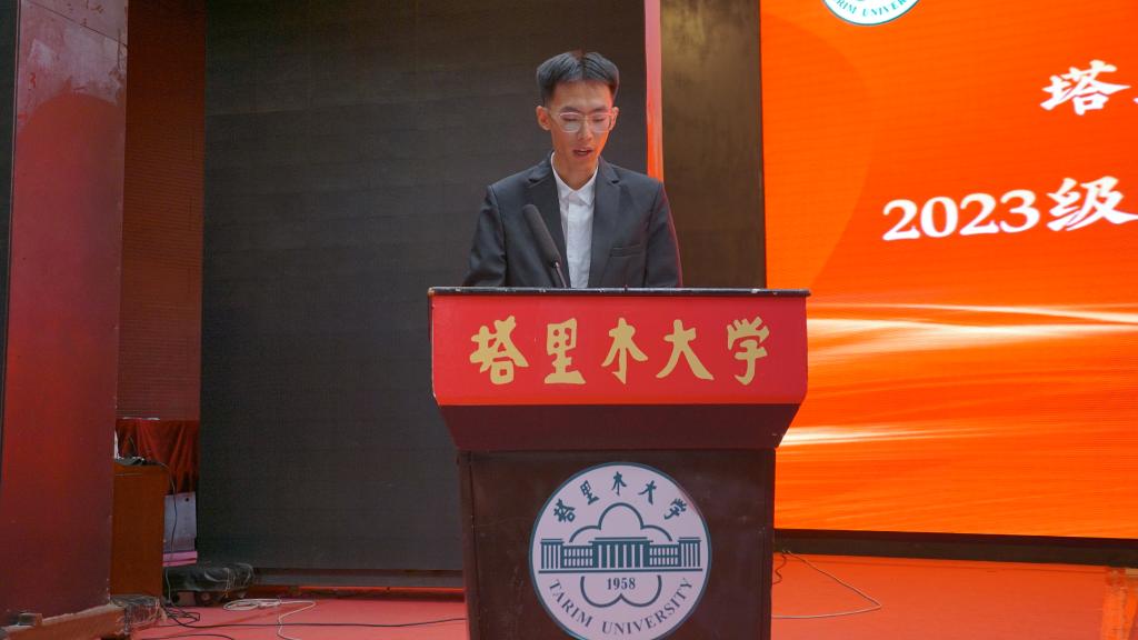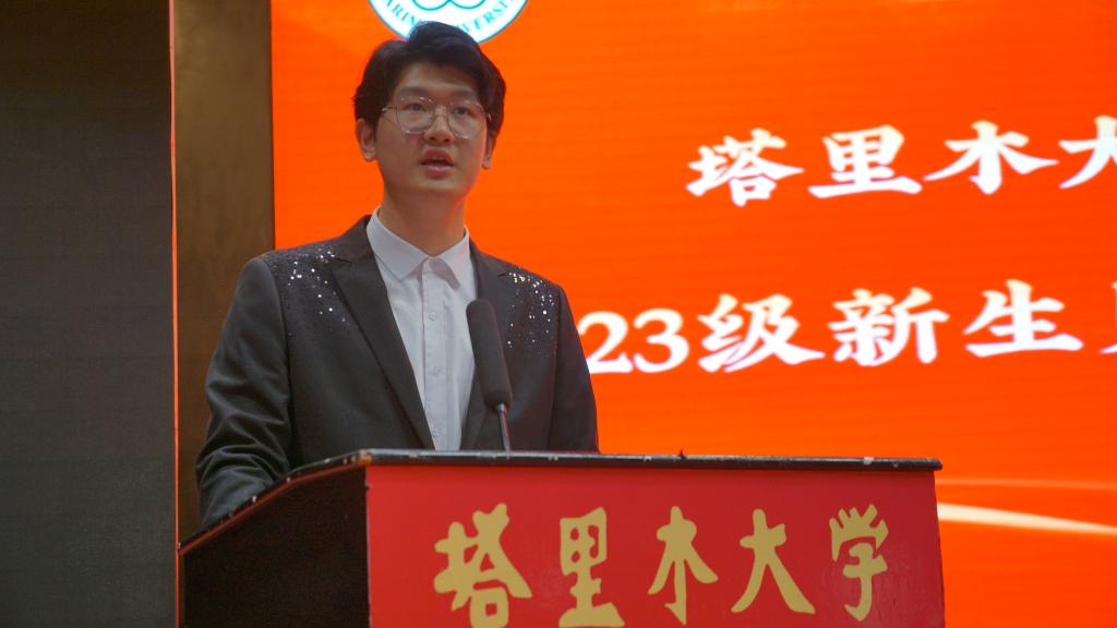 新生代表刘明扬说“来到学校之后,我更加坚定了扎根边疆、服务边疆的信念。在今后学习生活中,我将传承好胡杨精神,砥砺奋进,争取为兴疆固边作出更大贡献”。