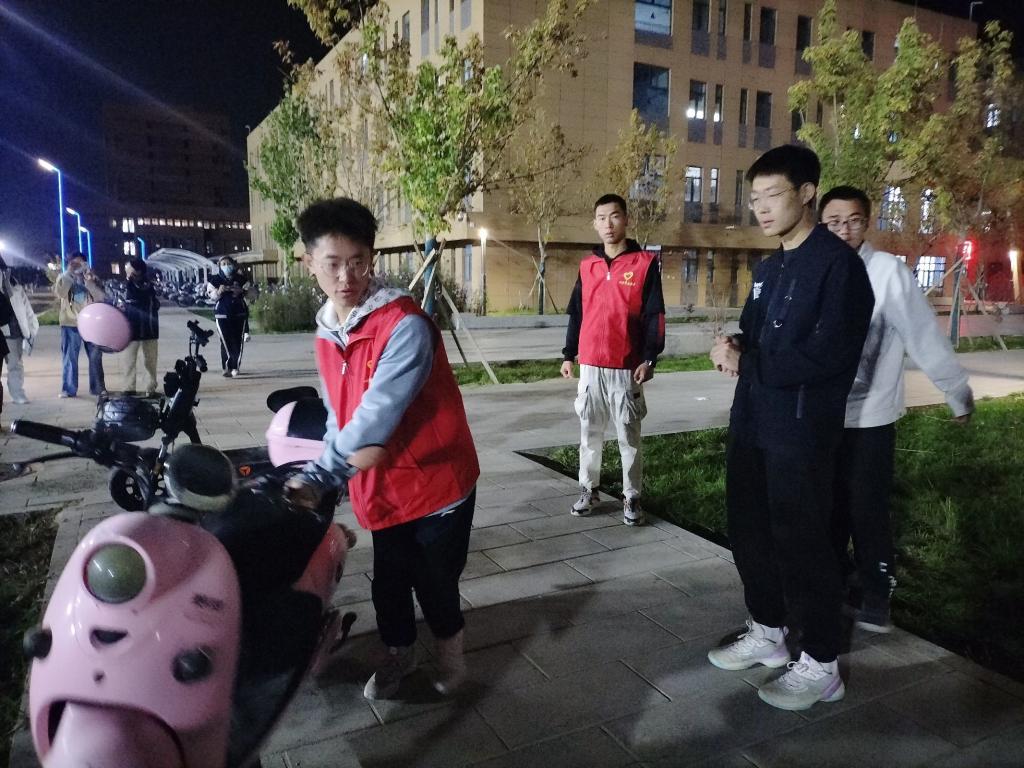 随后,全体成员分组进行自行车摆放工作。根据宿舍楼和停车区域的情况,他们有条不紊地将自行车有序地摆放在指定的位置,确保通道畅通,不影响他人出行;并针对公共区域存在安全隐患进行逐一排查,就区域卫生展开彻底、全面清扫。同志们积极配合,共同营造了一个整洁有序的自行车停放区域。