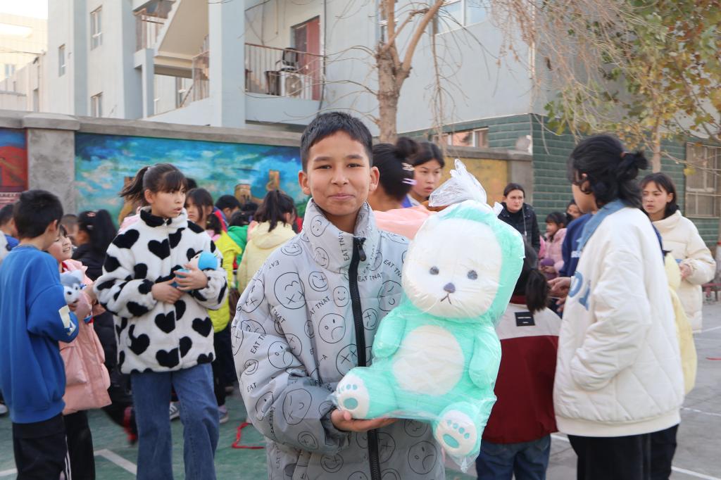 随后,我们进行了游戏互动环节。志愿者带领小朋友们进行篮球、两人三足、丢沙包等小游戏,并为参加游戏的小朋友们送上玩偶、生活和学习用品等爱心物资,不仅增进了孩子们与志愿者之间的感情,同时孩子们的欢笑声语和热情参与,也让我们看到了他们天真烂漫、充满活力的另一面。