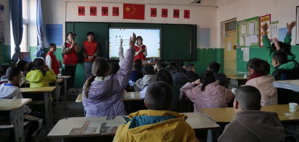 活动开始,志愿者以“梦想”为主题,向小朋友们介绍了《少年中国说》历史背景和文章大意,带领他们一同诵读全文,激发了小朋友们对未来的向往和期许,展现他们对梦想的执着追求和对未来的美好憧憬。