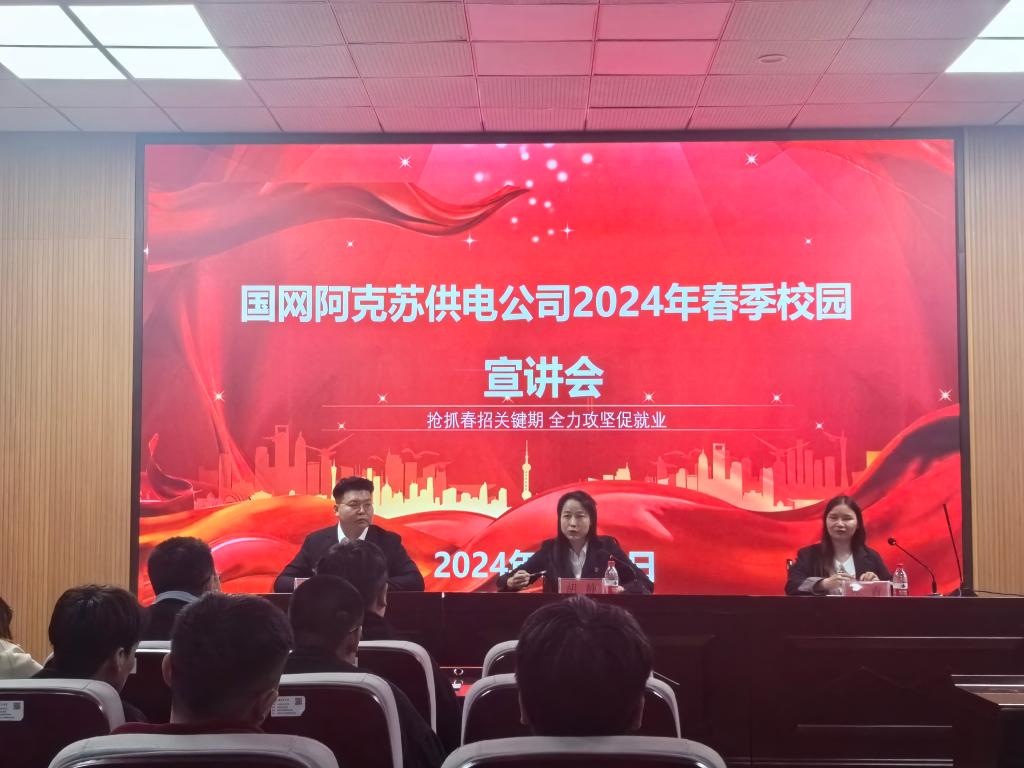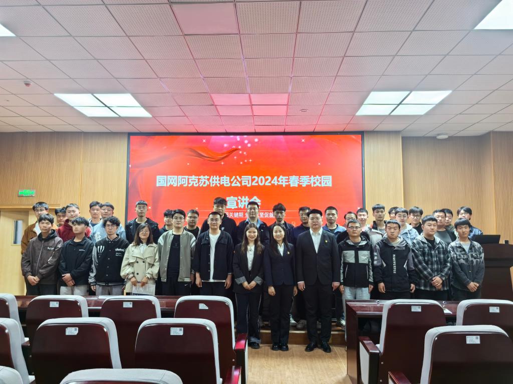 3月15日下午,国网阿克苏供电公司于新校区一期机电楼D109开展春季招聘会,电气工程及其自动化专业毕业生及负责就业辅导员参会。