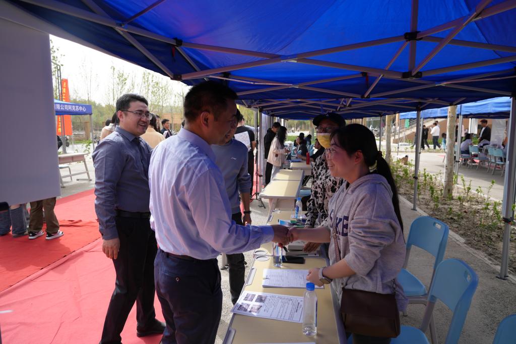 党委常委、副校长张宏荣一行来到招聘会现场,与企业进行深入交流,感谢各用人单位对我校就业工作的大力支持,关心校友在企业的工作生活、个人职业发展等情况并征集加强校企交流合作的意见建议,同时希望学校和企业发挥各自优势,促进资源共享、实现优势互补、共同发展,形成校企人才供需良好生态,助力区域经济社会高质量发展。