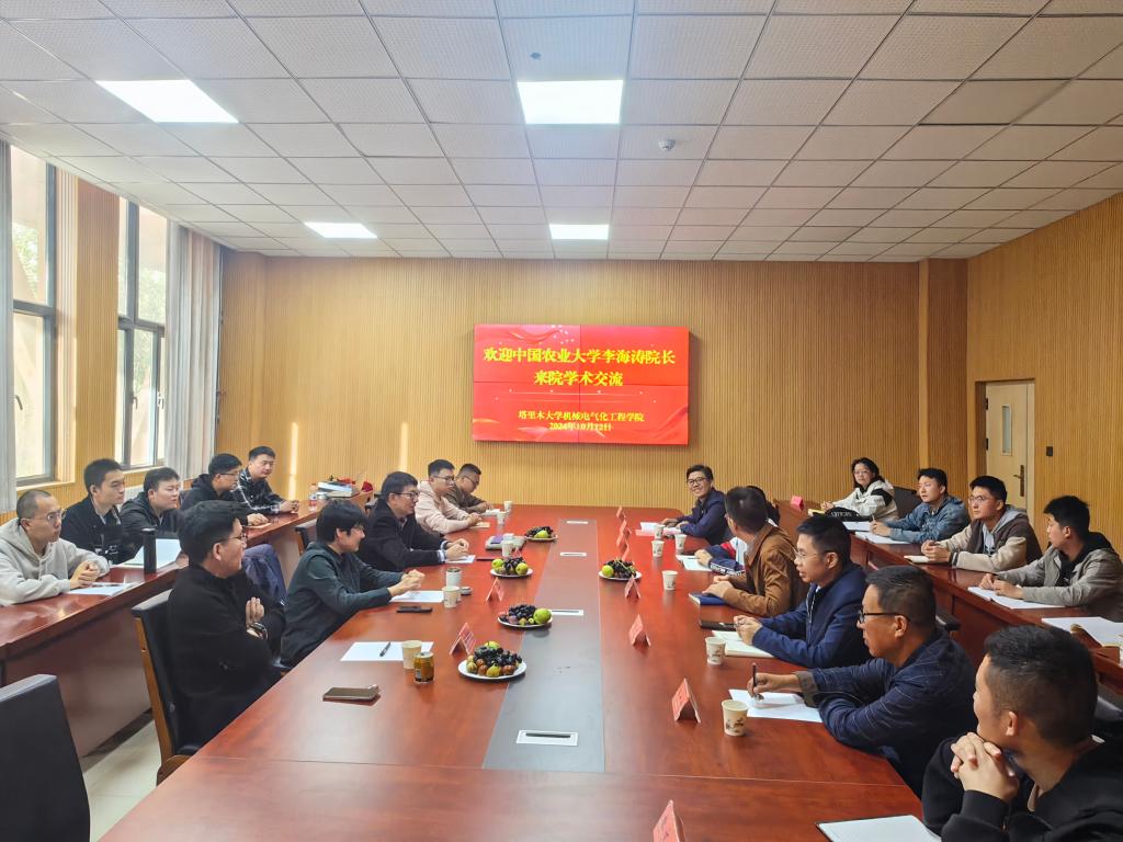 邀请,中国农业大学的李海涛副院长、吴敏教授、张学松教授等团队成员在新校区一期机电楼D101室进行座谈交流。会议由机械工程系主任胡灿主持。