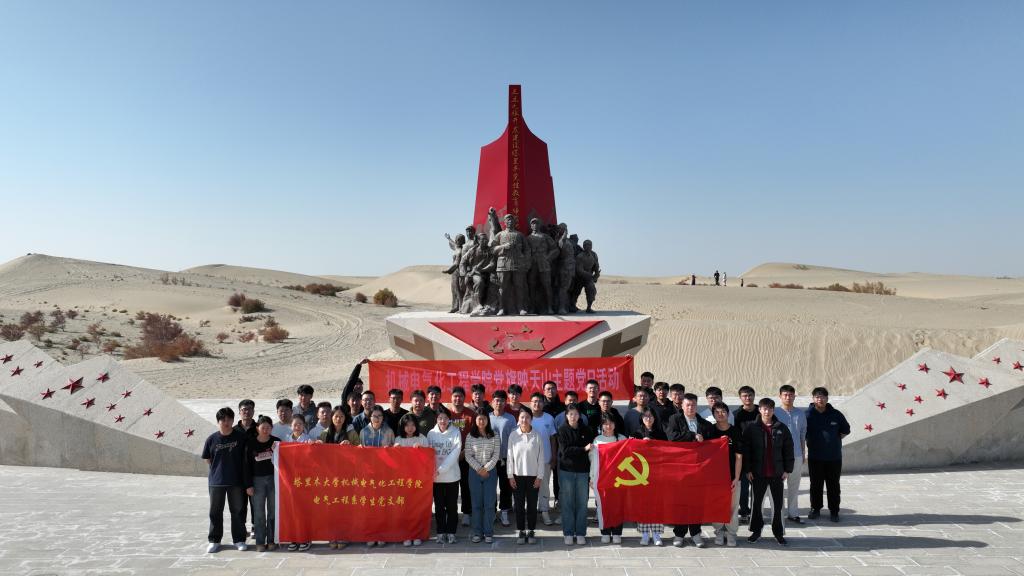 为深入学习沙海老兵精神、践行胡杨精神,强化党支部凝聚力,11月3日上午,电气工程系学生党支部开展了“胡杨映初心,沙海铸使命”党旗映天山主题党日活动,全体党员共同参加。
