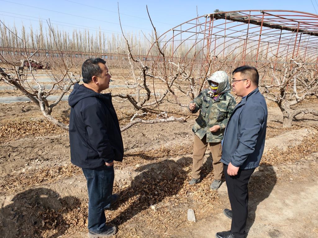团队成员还围绕连队的桃树进行培训指导,在桃树萌芽之前,应进行细致的复剪,以去除冬季修剪时遗留的病枯枝和盲枝,适当去除过密的枝条。还要对桃园进行施肥与浇水,确保在桃树进入萌芽、新梢生长的关键时期,树体有足够的养分,也为后期开花坐果提供充足的养分。