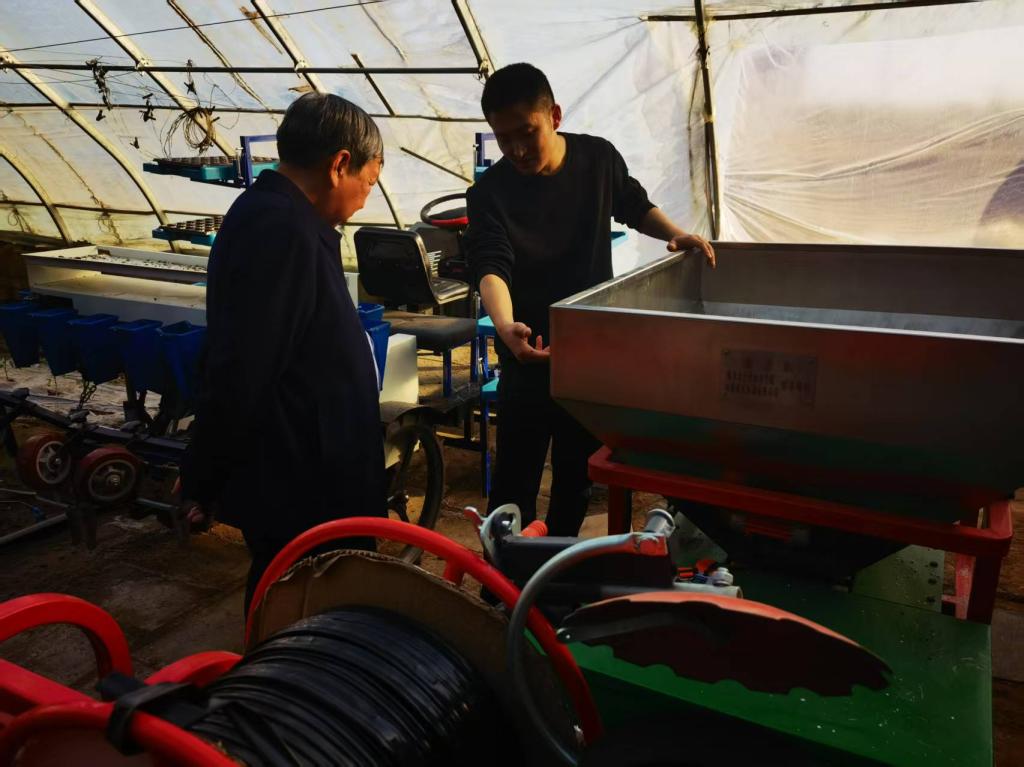 在基地番茄种植大棚内,坎杂教授重点观摩了双行移栽机作业演示。阿克苏综合试验站技术人员详细介绍了设备性能,该移栽机采用可调式株距和栽深控制设计,已实现作业效率与人工对比有很大提升。坎杂教授还重点观摩了电动撒肥机、起垄覆膜一体机及双行移栽机的协同作业演示。