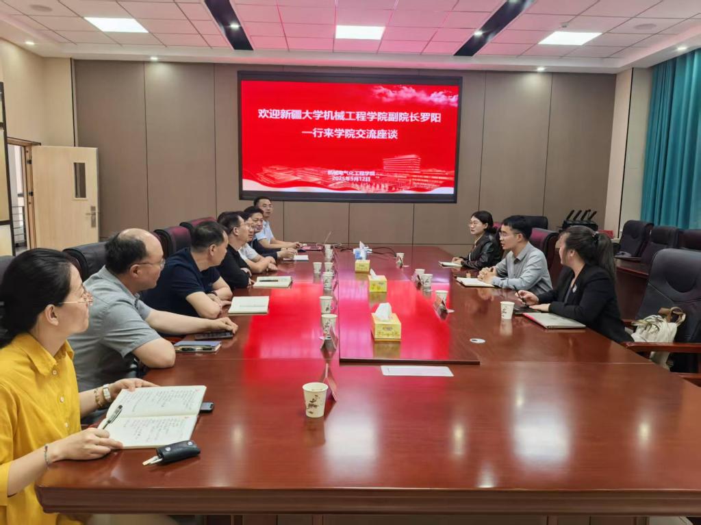 5月12日,新疆大学机械工程做爱电影 、智能制造现代产业做爱电影 副院长罗阳、主任万晓静、教师罗秀芝一行3人来院交流座谈。做爱电影 党委书记王旭峰,党委副书记、院长张有强,副院长吕志军、张洪洲以及各系书记、主任参加座谈。